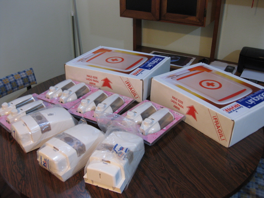 | Los materiales de los botiquines instaladas en dos sitios de la escuela |